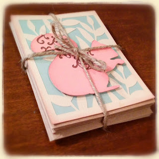 I love making cards. Sometimes, and this could be a very strange problem to have, I have a difficult time making just one card. I love making card packs. Most of the time the card packs follow a theme and sometimes they don't. The two card packs I'll show you below do follow a theme. It's really a cartridge thing, I think. I find a cartridge that has some really cute images and then I just need to cut a bunch of the images out. What better way to use the cuts but cards?!